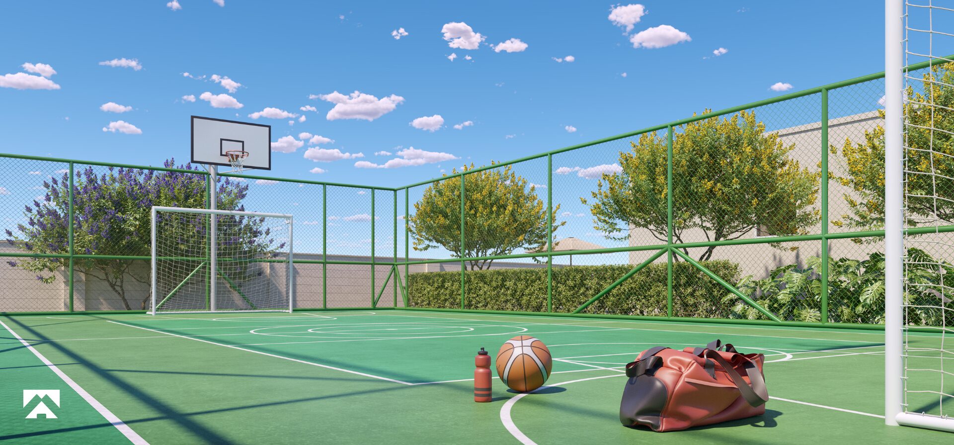 ✔️ Quadra poliesportiva, para praticar diferentes modalidades esportivas;